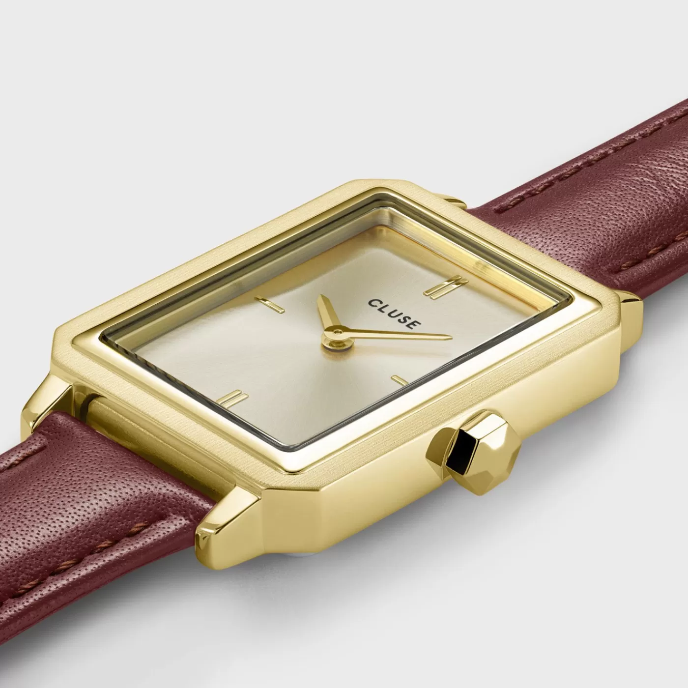 Questa splendida confezione regalo CLUSE combina l’orologio da donna Fluette più venduto in una combinazione di colori rosso scuro e oro con un delicato braccialetto color oro. L’elegante orologio Fluette presenta una cassa rettangolare color oro da 30,6 mm, quadrante sunray champagne e cinturino in pelle rosso scuro. Indossalo insieme al braccialetto aggiuntivo color oro con ciondolo con perla rossa, per un look sofisticato ma allo stesso tempo forte. Presentato in una moderna confezione regalo con motivi geometrici.